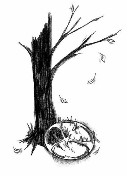 Колесо спасатель заметил под деревьями за поворотом. Спрыгнул с дороги и пошел за ним в лес.
