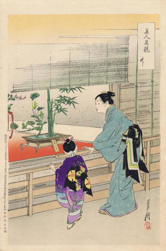 Красавицы и икэбана с бамбуком. Автор: Огата Гэкко, 1896 г.