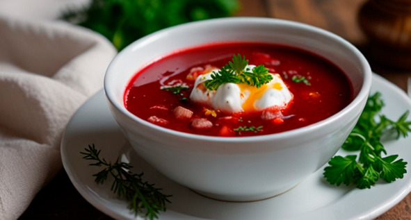 Секретный ингредиент: Многие повара добавляют в борщ немного уксуса или лимонного сока, чтобы подчеркнуть вкус свеклы и придать блюду яркий цвет.