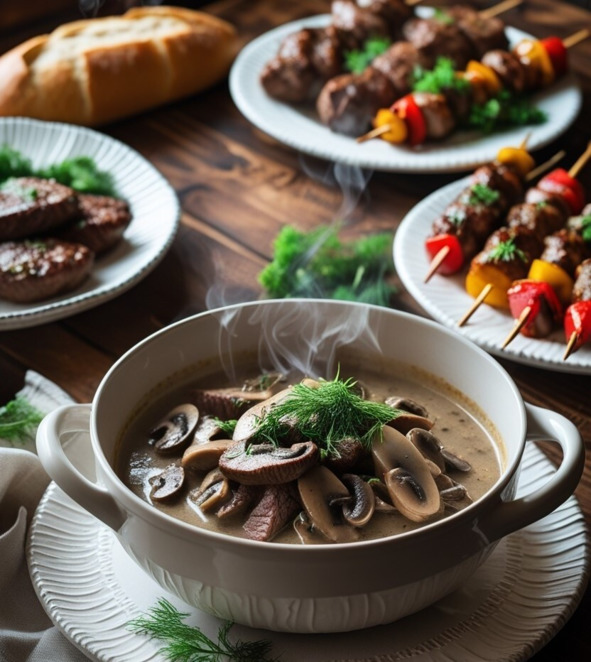 Бефстроганов – это одно из самых известных и любимых блюд русской кухни, которое сочетает в себе нежное мясо, сливочный соус и ароматные грибы. Это блюдо идеально подходит как для праздничного стола, так и для уютного семейного ужина. Давайте разберемся, как его приготовить!
