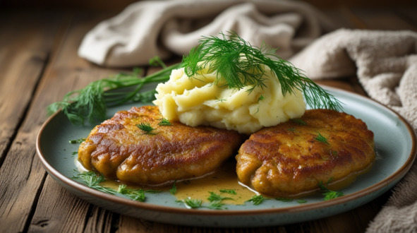 Подача: Котлеты по-киевски можно подавать горячими с гарниром из картофельного пюре, свежих овощей или салата. Не забудьте украсить блюдо зеленью!