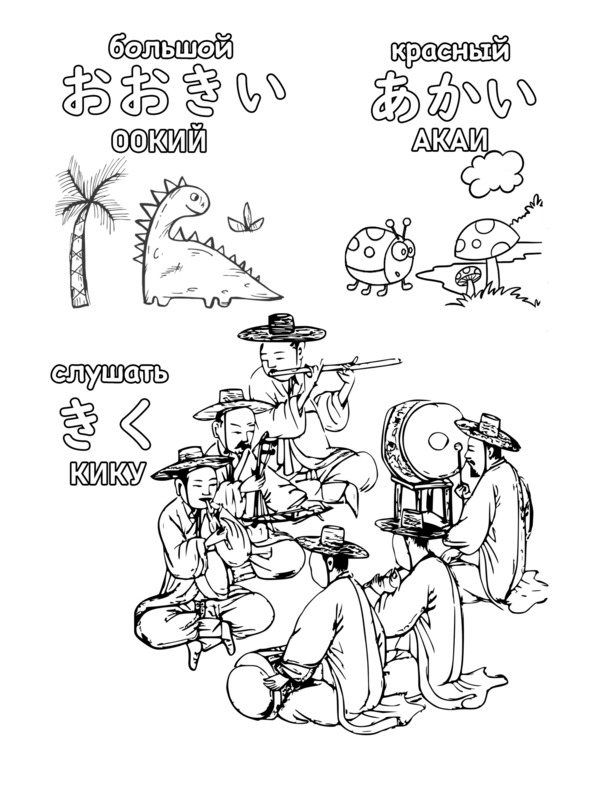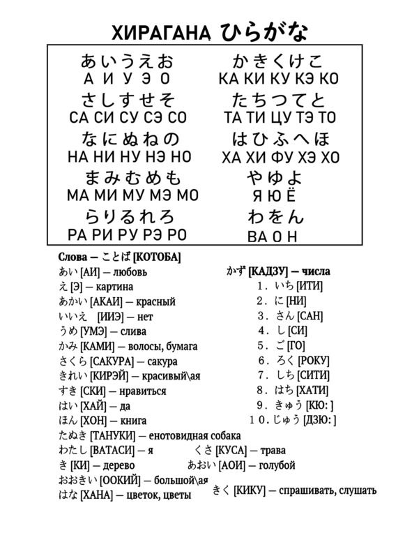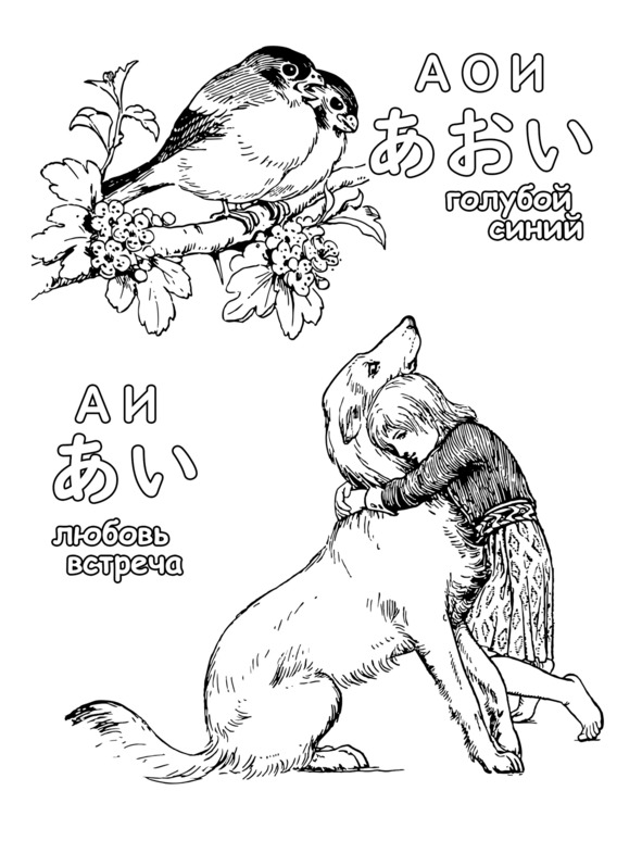 Японская азбука Хирагана. Раскраска и прописи