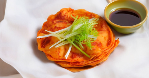 Это традиционные корейские блинчики, приготовленные с добавлением кимчи. Они имеют яркий вкус и могут подаваться как закуска, гарнир или снэк. Блинчики легко готовить, и они идеально подходят для вегетарианцев.