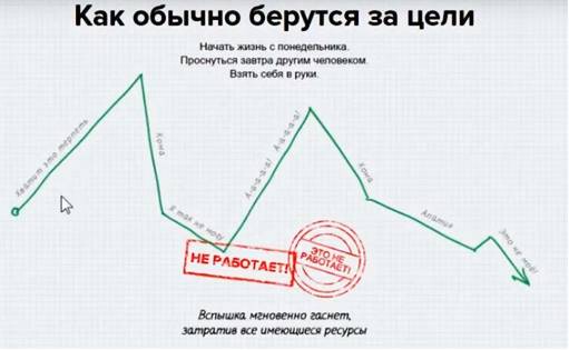 И вот человек начинает с понедельника что-то делать и получает первые результаты, а так как нет пошагового плана, то, что делать дальше, непонятно, и человек проваливается.