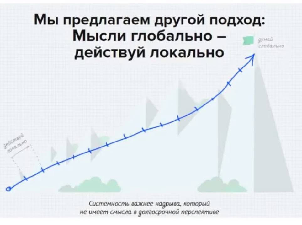 Далее нужна система целесообразных действий. Подход должен быть системным. Это система, которая включает в себя все аспекты этого процесса. И где расписан каждый шаг. Если нет системного подхода, и все действия хаотичные, то всплеск энтузиазма очень скоро угасает. Вы сходили на какое-то мероприятие, вдохновились, и у вас прилив мотивации, но вы утром просыпаетесь и не знаете что делать, потому что у вас не расписана пошаговая система действий.