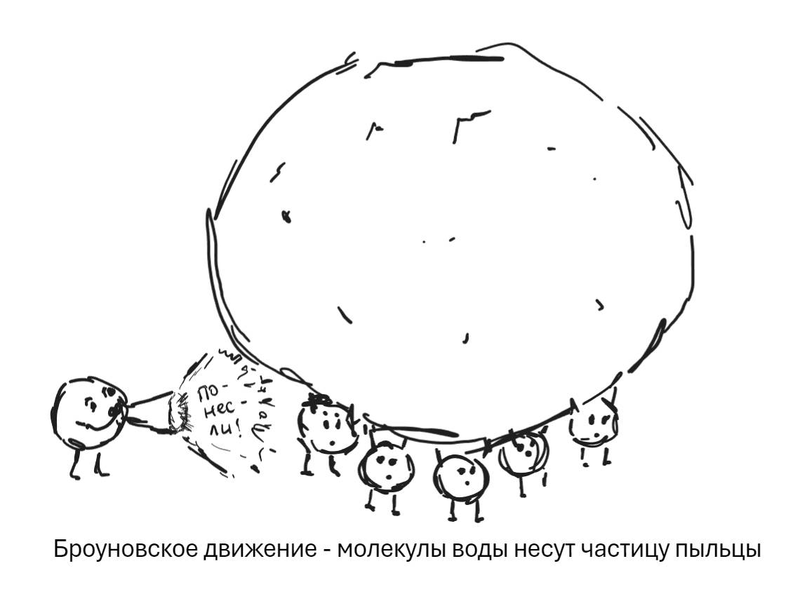 Открыватель явления Броун наблюдал за перемещением пыльцы в воде. Шерсть собаки не всегда может перемещаться, так как она достаточно крупная. Однако вы точно можете увидеть это явление своими глазами, когда в стакан, который долго простоял на столе, приземлится пылинка и начнет вальсировать по его поверхности.