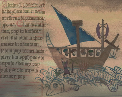 – Ничего. Смотри, какие буквы интересные, а вот картинки с древним кораблем.