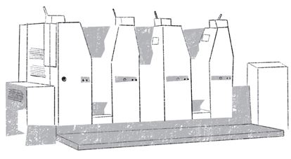 В печатной машине текст и картинки с металлической формы переносятся на бумагу. Для печати цветной книги достаточно всего четырёх красок: голубой, пурпурной, жёлтой и чёрной. Смешиваясь, эти краски дают миллионы оттенков!