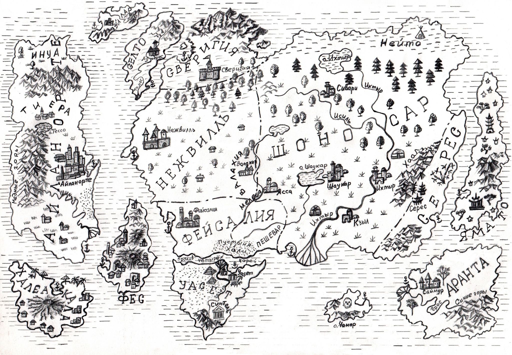 Мир, в который Вы попадёте и который вы можете увидеть на карте, начал создаваться много лет назад и расширялся от книги к книге. Так, в «Детях горькой воды» была описана только Айланорте, в следующей книге появился Фес и так далее. Читатели познавали мир и продолжают познавать мир вместе с героями.