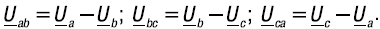 На основании уравнений по второму закону Кирхгофа для контуров N1abN1, N1bcN1 и N1caN1 нетрудно получить следующие уравнения, связывающие линейные и фазные напряжения: