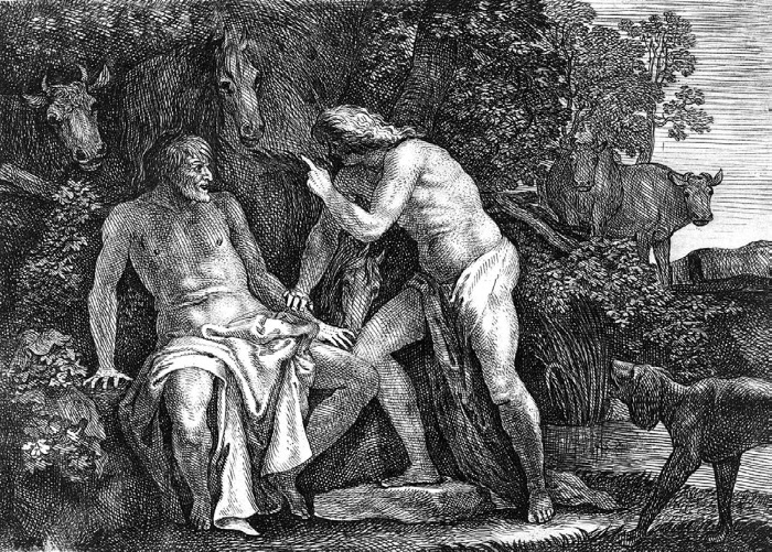 Мозес ван Эйтенбрук «Меркурий обвиняет Батта», XVII в., офорт