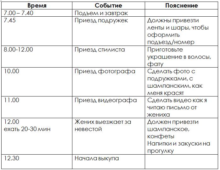 Информация о сроках подготовки и дресс-коде взята с сайтов: wedding-bride.ru, weddingadvice.ru, wedding-fabric.ru, the-bride.ru