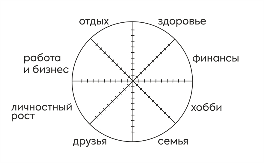 Оцените каждую из сфер. Оценки будут отображать уровень вашей удовлетворенности. От 0 до 3 – низкий уровень, 4-7 средний, 8-10 – высокий.