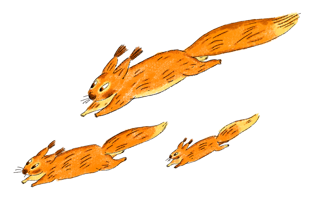 – Побежали белок смотреть! ― предложил я и припустил по дорожке, только пятки засверкали. А за мной папа Милый Булкин. Потом мы остановились, потому что Афанасий Иванович-то у нас старенький, еле-еле двумя лапками в ботиночках перебирает.