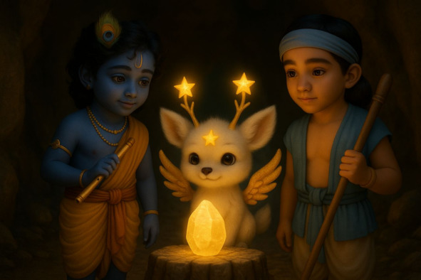 Твиша, Кришна и Баларама собираются в путь. Им снится сон о лесе Духов, где звери умеют говорить, а старый демон прячет волшебный камень, исполняющий желания.