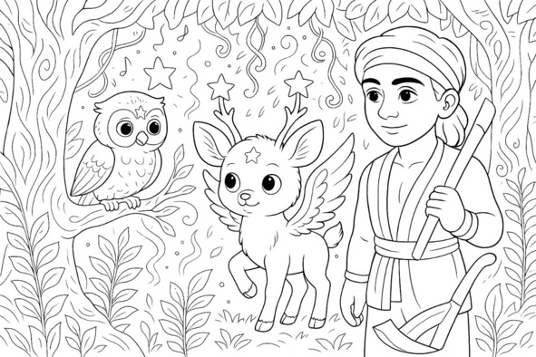 В город пришли обитатели леса: оленята, совята, павлины и даже духи речек. Они помогли – кто строил школу, кто лепил из облаков игрушки, а кто рисовал радугу на главной площади.