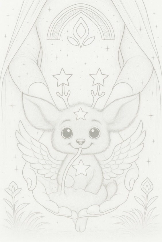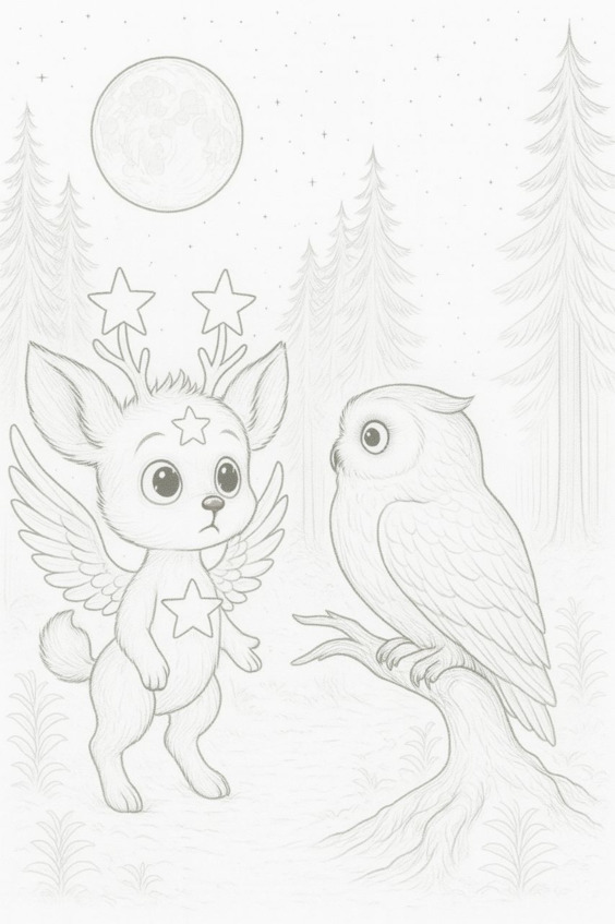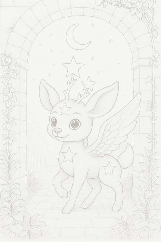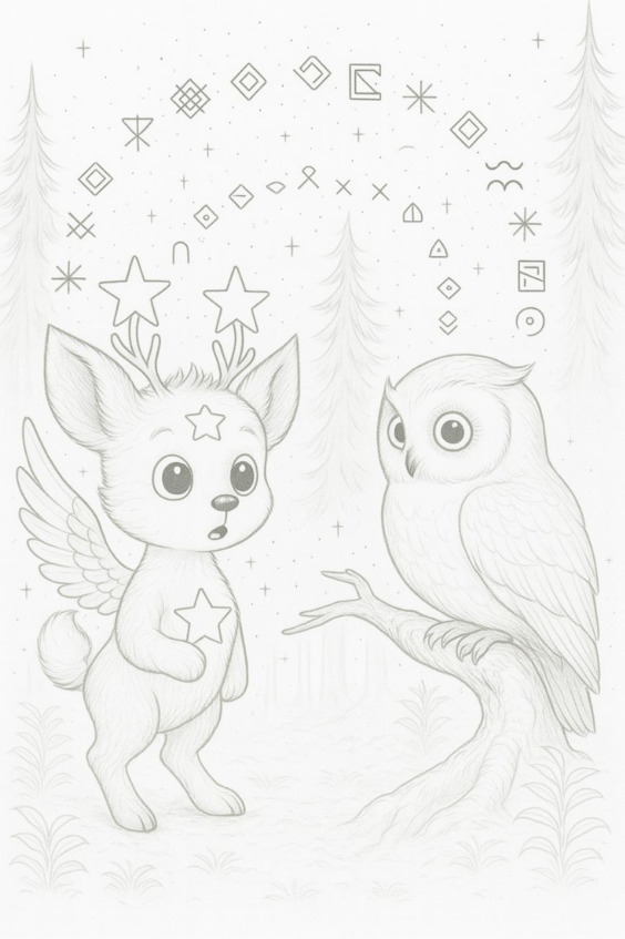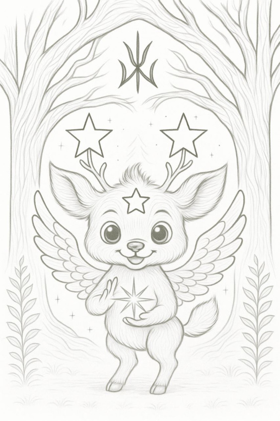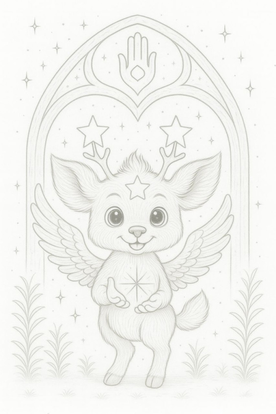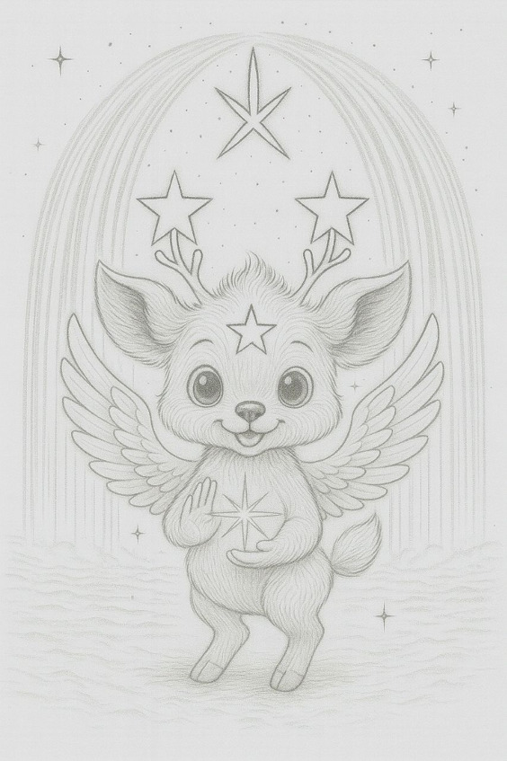 ВОЛШЕБНАЯ СКАЗКА – РАСКРАСКА (БЕЗ СЛОВ), О ПУТЕШЕСТВИИ ОЛЕНЁНКА ТВИШИ К ЗВЁЗДНЫМ НАКШАТРАМ.
