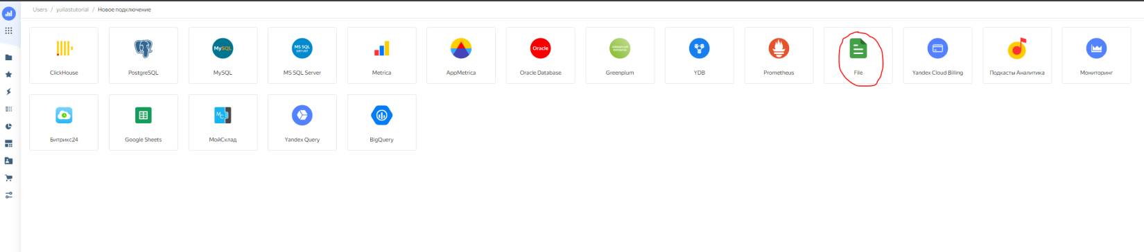 ПодключенияДанный тип создается в самом начале, здесь мы указываем системе, откуда нужно брать данные и какие. На данный момент доступно несколько вариантов подключения.