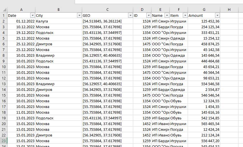 Итак, вот так выглядит наша выгрузка. С ней мы и будем работать.