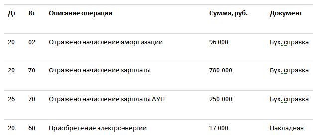 Определение затрат и списание их на себестоимость;