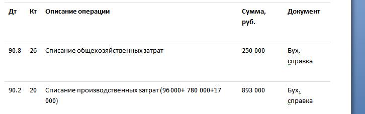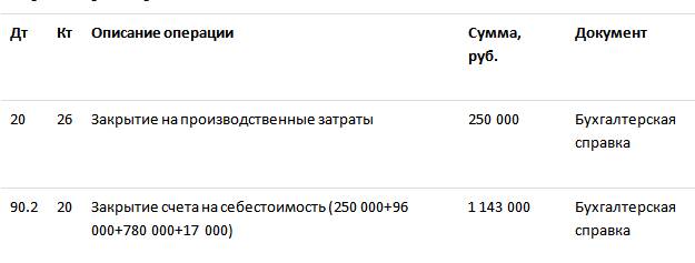 Проводки по закрытию затратных счетов в конце месяца при использовании списания затрат на прямые расходы: