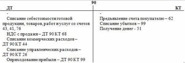 Счет 90 "Продажи" предназначен для обобщения информации о доходах и расходах, связанных с обычными видами деятельности организации (с процессом реализации готовой продукции, товаров, выполненных работ и оказанных услуг), а также для определения финансового результата по ним. На этом счете отражаются выручка и себестоимость по: