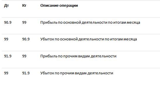 Закрытие счетов 90, 91, 99 проводки в конце месяца