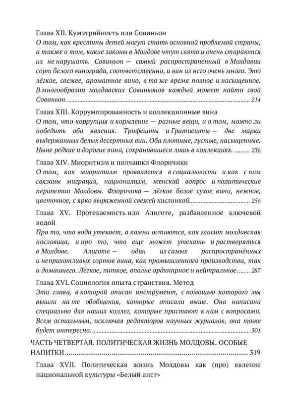 …Наконец, последняя реплика из вступительных. Мы исходим из того, что книга про конкретную страну должна быть похожа на эту страну. Соответственно, книга про Молдову должна быть похожа на Молдову. Так она нами и писалась. В результате наше произведение получилось более спонтанное, более эмоциональное, более колористичное, чем, возможно, следует быть тексту академического происхождения. Хотя кто и когда решил, что академический текст обязательно должен быть скучен и труден для чтения?