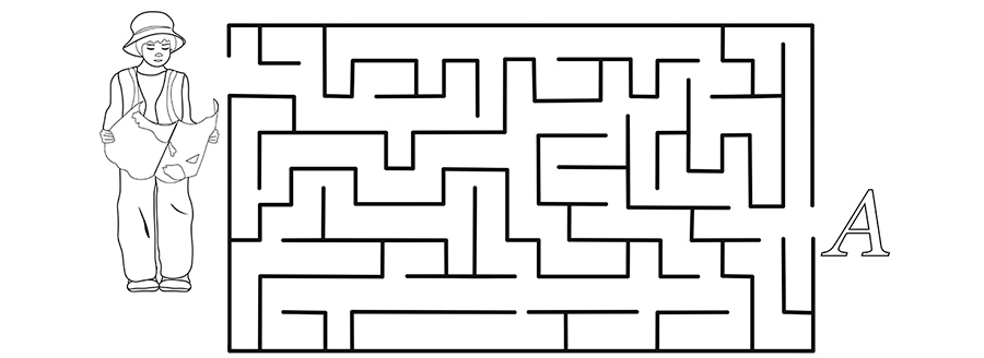 Помогите Алёше пройти к букве «А» и раскрасьте его путь: