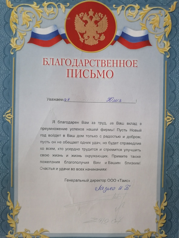 «Был самый лучший менеджер, который помогал и был очень внимательный – Юлечка наша. Могу сказать только тёплые слова. Очень скучаю. Было очень приятно работать с вами.