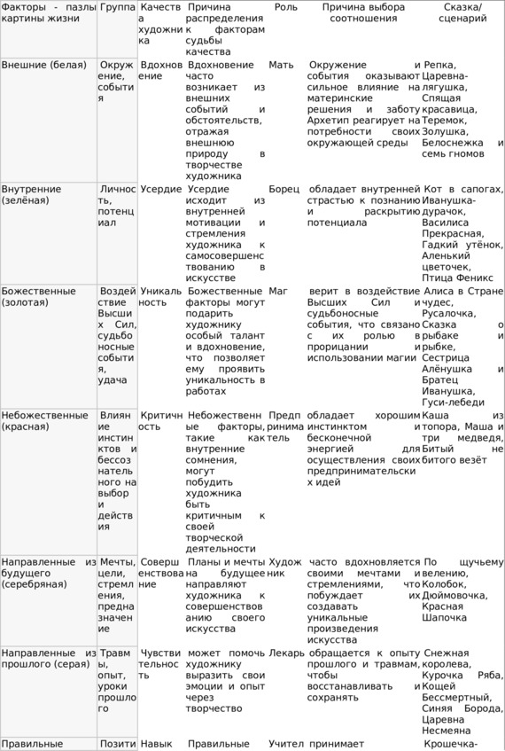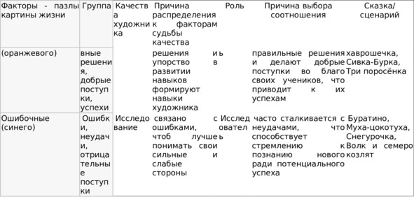 Для наглядности увиденное вами представлено в виде таблицы «Факторы судьбы»: