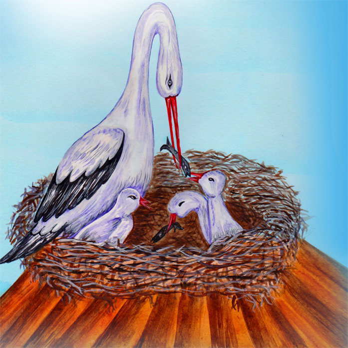 Они гнёзда вьют на крышах,Счастье в дом несут,Прилетают к нам весною,Все их любят, ждут.В чёрно-белом опереньеДивной красоты,Словно сказочные птицы,Символ доброты.