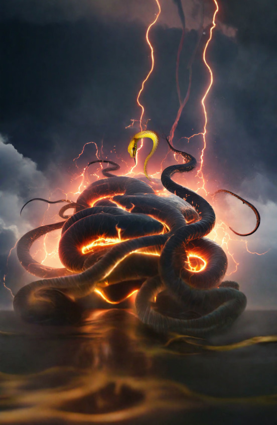Десять лет спал Персеус, погружённый во тьму. Вдруг по болоту пробежали еле заметные искры. Они, как светлячки, сбегались к чреву цветка. Множество светящихся огоньков собралось в Персеусе и закружилось в нём с невероятной силой. Столб пламени вырвался из цветка, и чёрные лепестки-змеи враз подняли свои головы вверх. Они извивались, как ленты на ветру, словно хотели вырваться и умчаться в разные стороны.