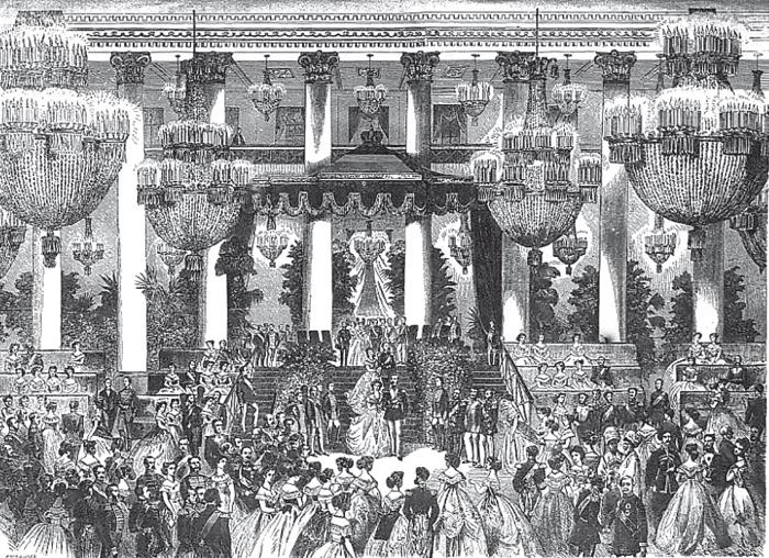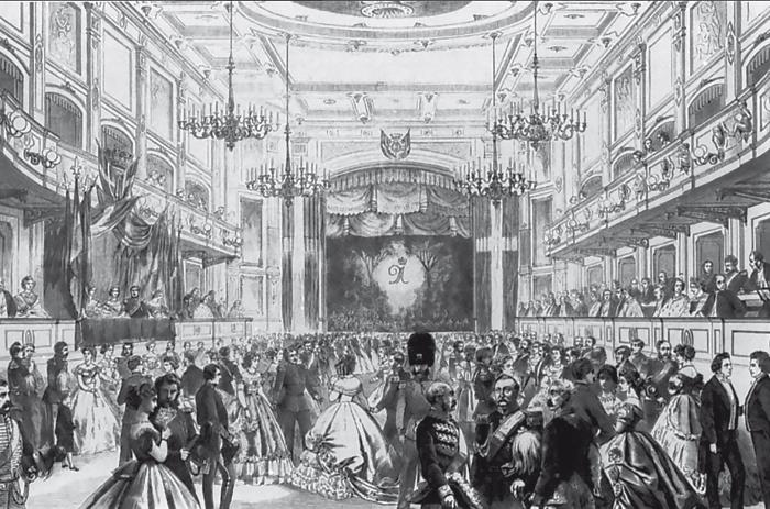 Торжественный бал 9 ноября 1866 года в Копенгагене в казино-театре по случаю бракосочетания датской принцессы Дагмар и цесаревича Александра Александровича
