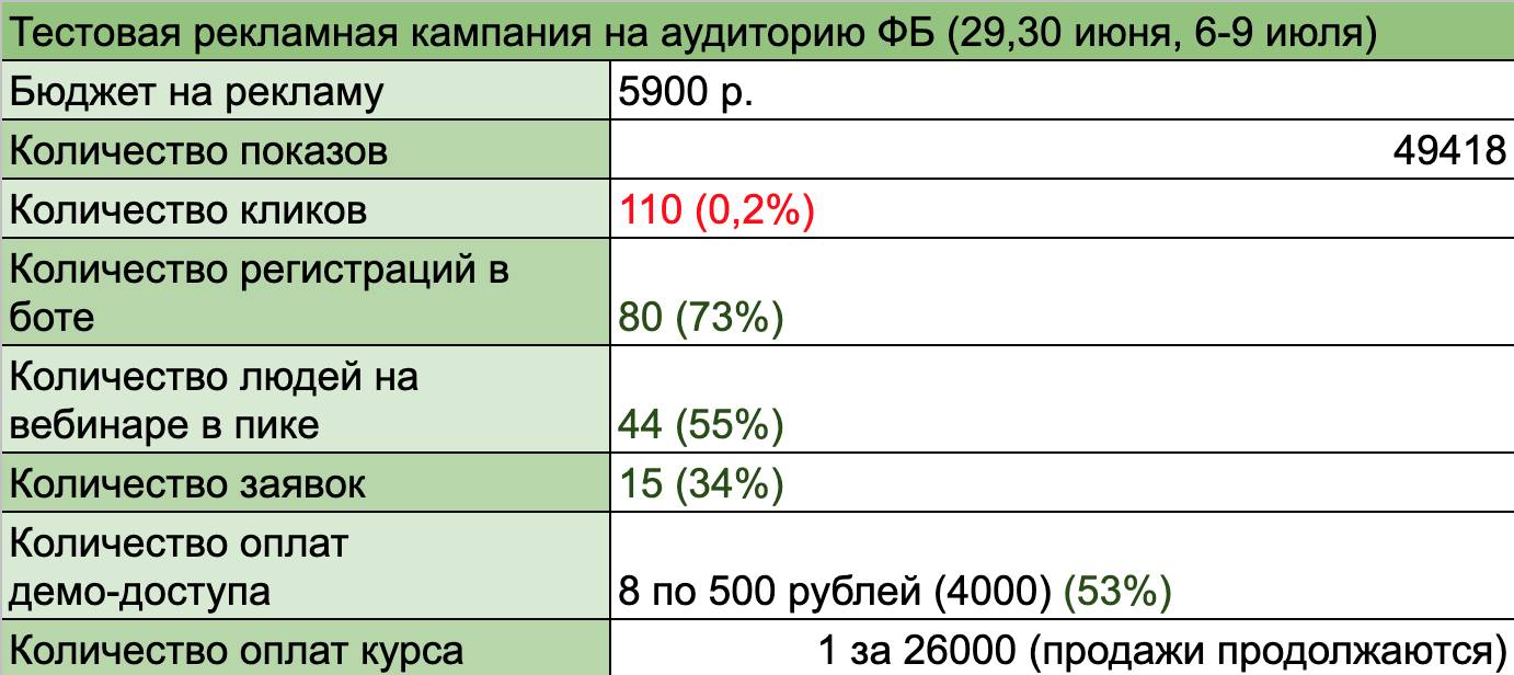 Дата следующего вебинара в ходе которого обобщим опыт первого теста запланирована на 29 июля на 19:00мск. Выделен бюджет на рекламу 15000 рублей.