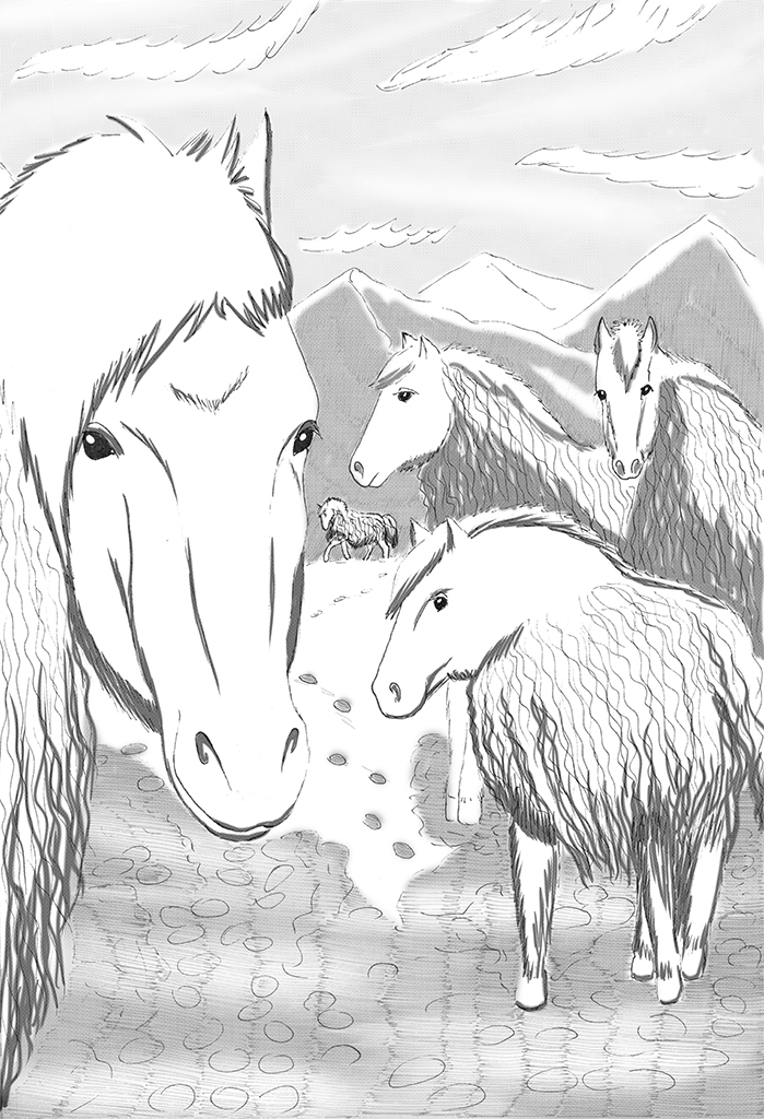 Во-первых, они исполинские. Та, на которой вчера за нами приехал пастух, – довольно миниатюрная по сравнению с основной массой табуна. Мне объяснили, что пастухи ездят только на своих собственных лошадях, а особо крупные экземпляры, понятно, и жрут в особо крупных размерах, и это невыгодно. К тому же мы стояли на снегу на лыжах, а того снега там было немало, лошадь же благополучно проваливалась по колено, так что оценить её рост было трудновато.