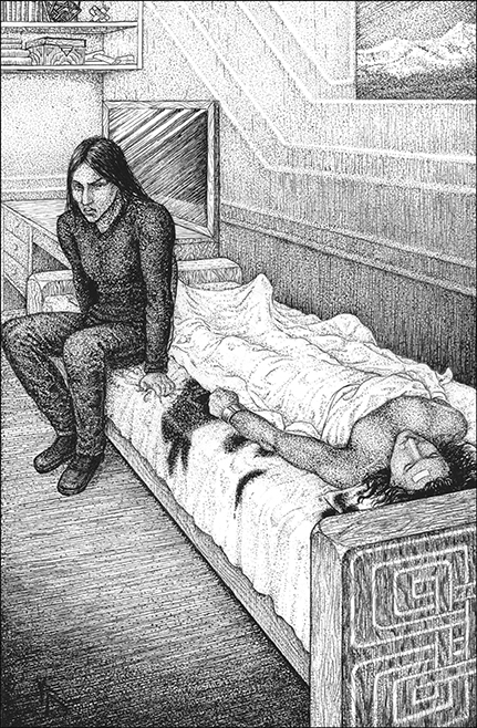Я уже открываю рот попросить его посидеть тут, присмотреть за больным, когда дверь вдруг распахивается и входят Азамат с Алтонгирелом. Азамат такой мрачный, что аж лицо потемнело, не знаю уж, как это возможно. Алтонгирел, наоборот, серовато-бледный, глаза пустые и как будто даже отощал, хотя всего-то прошло несколько часов.