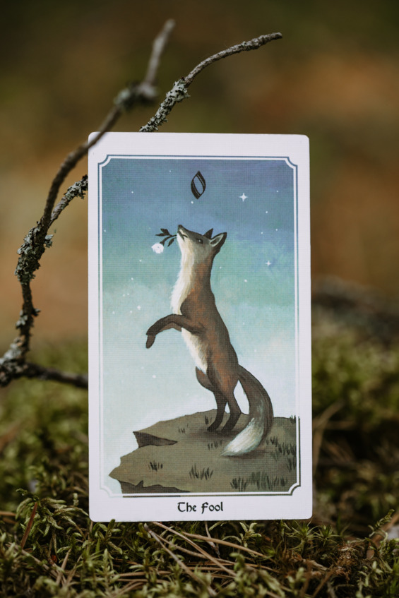 Хоть повсеместно считается, что образ Лисы – это образ обманщика, плута и лжеца, в данной карте этот негативный окрас нивелируется чистотой и невинностью белого цветка, звездное небо – как символ прекрасного и непостижимого, вечного и манящего.