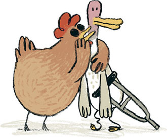 Курица громко зевнула. Затем подошла к утке поближе – быть может, даже слишком близко, – положила крыло ей на плечо и принялась уговаривать: