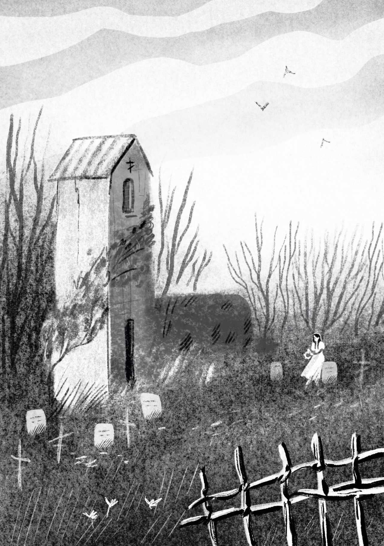 На этом месте мысли преподобного прервал высокий звук, странно напоминающий пение ребёнка. Девочки. Ранним утром. На одиноком кладбище.