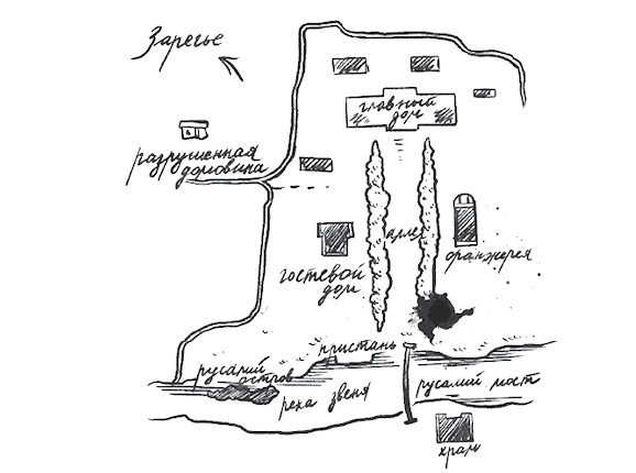 От меня: я перерисовала из карт, что хранятся в библиотеке, схему усадьбы (вы можете посмотреть оригиналы и, быть может, сделать более точный чертёж).