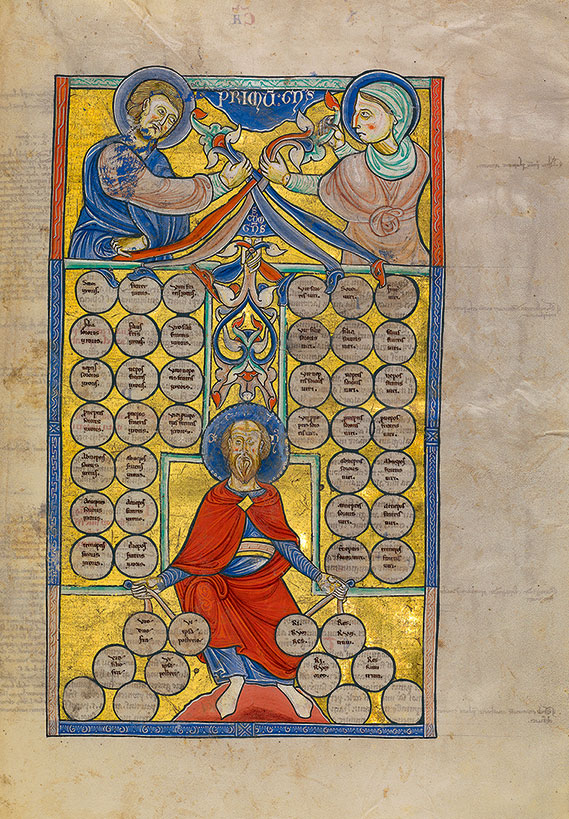 Мы подошли к рабочему месту Адельма, где лежали листы Псалтири, покрытые его рисунками. Тончайшие листы ягнячьей кожи – дивного, царственного пергамента. Последний, неоконченный, до сих пор был прибит к столешнице. Вылощенный пемзой, умягченный мелом, растянутый на станке, он был наколот по краю мельчайшими дырочками-вешками, направляющими руку мастера.