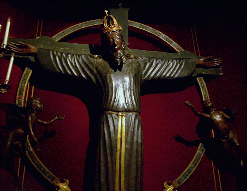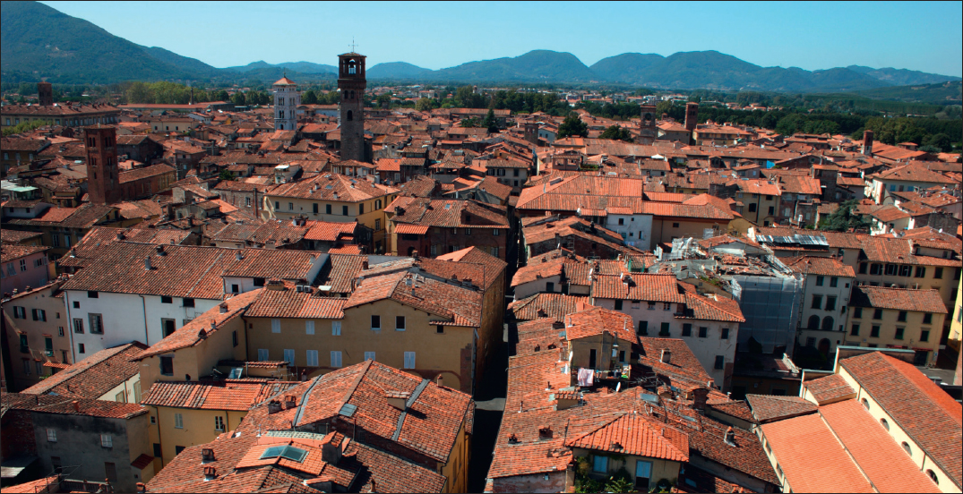 The community’s religious and spiritual expression is particularly notable in the edification of churches and the development of the cult of the Holy Face, the town’s patron. The Holy Face, or Volto Santo, is a wooden crucifix believed to have been sculpted by Nicodemus, a friend and contemporary of Christ, and brought to Lucca in AD 742. Bound up with religious expression is the city’s artistic outflowing, in the wealth of religious buildings, the decoration of its churches and in the production of its silk factory, used to make religious vestments.