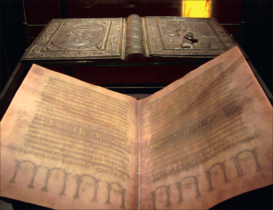 The Codex Argenteus – the ‘Silver Bible’ – is a remnant of a liturgical book of the four Gospels written in the Gothic language for Arian Christian Church services in the early 6th century.