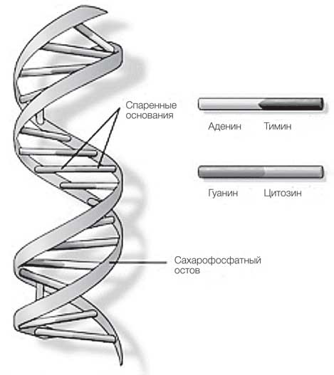 Сначала они решили, что основания стоят в парах друг с другом, то есть, например, перекладина образуется при связи аденина с аденином. Но однажды Уотсон принялся играть с комбинациями, используя собственноручно вырезанные из картона модели оснований. “И вдруг я заметил, что пара аденин – тимин, соединенная двумя водородными связями, имеет точно такую же форму, как и пара гуанин – цитозин, тоже соединенная по меньшей мере двумя водородными связями”. Ему повезло работать в лаборатории, где трудились ученые разных специальностей, и один из них, специалист по квантовой химии, подтвердил, что аденин привлекает тимин, а гуанин – цитозин.