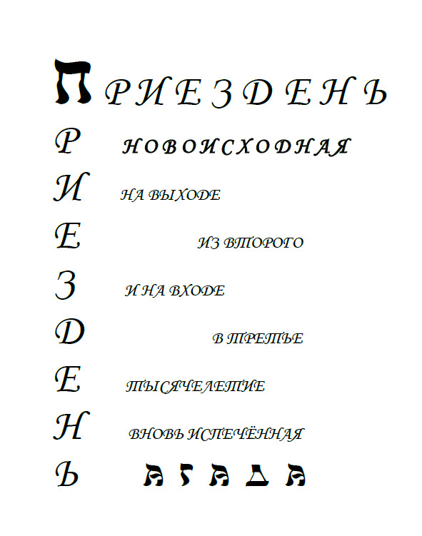 Ведущий седера (Тамада).Минула пара тысяч лет.Не тщетно тщились:Век обрек на счастье.Не смыкая век, тащисьВсю ночь и весь свой век,От Пасхи до мацыВновь испечённой Агады!Как же? – Сбацав «Алию»Да не сбацать Агаду? Да соборно?Пейсах-шпиль, —В щекотливой теме «Возвращения» —Исход в свете Откровения.Не о рабстве пойдёт речь,В братском панибратстве —Цимес нашей Агады,Как залоге счастья! —«Возвратились»? Всё в порядке?Девка наигралась в прятки?Время загадать загадки!Сохнут по Илье товарки?(Не Сохнут ли здесь какой именуется Ильёй?)Вот вопрос вам на запоркуДля затравки – на пятёрку:В «Законе» – вон, в загоне – вонь.Сион. Ржёт. Кто «Троянский конь»? —Кто торчит там, припершись,В правду-матку упершись,Сделав ноги в край родной,Миллионною толпой,Смешанною и смешной? —Пробы ставить негде, да?Ты ответишь, али я?Кроме шуток, в конфиденциальности,Кто евреи эти по национальности?Те, кто знают, тем без нужды,Затевая не по службеЭпос о любви и дружбе,Утверждая, что конечно,Нынешняя катастрофа — фарс,А фарс известно — Катастрофы дежавю…Не сломать ли Агаду?Агаду прикольную, клёвую,Фривольную, об рязанстве,Братстве и об обрезанстве.Ведущий. В комсомоле была пара вожаков,Рязань их знала:Колька И в миру Иван,В «эмиссарах» – Ур-Каган.Жили-были не тужили,Пробил час, махнуть решили…(Там – НАТИВ освобождал,Ход амнистии был дан.)Иван. Призадумался Иван:– Нет альтернатив.Николай. Колян: – Подмахнула же сестра?Иван. – Маху даёт только Сара…Николай. – Но не всем и не всегда!Иван. Усмехнулся ветеран:– Всем браткам обрежу сам!Только б оседлать конька,Чудо-Сару-горбунка!Николай. Колян:– Боже упаси! Обкорнать ботву братвы? —Ну, Ванюша, задал маху,Признаюсь, нагнал ты страху! —Что за извращение?Иван. – «Закон»!Николай. – О развращении?Иван. – Имя нам…Николай. Колян: – Хамло!Иван. – Хаму ж…Николай. – Хамово, Вано!Иван. – Хата, Коля, моя с краю, стаю свистну…Николай. – К Первомаю?Иван. – Весь райком!Николай. — На палку чая?!Иван. – Чaй есть выбор…Николай. – «Возвращения»?Иван. – С тёщей! В рай!Ведущий. Торчит месяц над Окой.Первомай. Комсорг лихой,За Израиль встав горой,Из Рязани рвется в бой.Как «посланец» — клич кидает,Паству «с чаем» разговляет:Иван. – Нам плетью сук не перебить,Хоть режь, хоть плачь…Комсомольцы. – Хоть удавись!Иван. – Иные нынче времена.Не лучше ли?..Комсомольцы. —Пере- любстись?!Иван. – Об- жиде- ниться…Комсомольцы. – Что сестра?Иван. – Привет шлёт…Комсомольцы. – От пархатого?Иван. – «Корней так многоКоренных, заветный ж у…»Комсомольцы. – Пейсатого?Иван. – Народная свалка, —Арабки, славянки…Комсомольцы. – В натуре?Иван. – В гиюре! Поддержим?Комсомольцы. – Рязанку?Иван. – Нет!Засланцев, за смекалку!Комсомольцы. – Заваривши, групповой,Чифирёк крутой, «с ялдой»,На субботник зазывай,Рыбку ж нам не заливай!Иван. – Только тех, чья, вашу мать,Сара…Комсомольцы. – Абсорблядь?Ты сексот!Иван. – Вестимо.Комсомольцы. Рать:– Помогали мы жидкам…Иван. – В одночасье поменялись —Жидки помогают нам:Чай, что пиво… (Пастырь)Комсомольцы. – С раком?Иван. – Похристуемся ж!Комсомольцы. – Со смаком?Иван. – С девой!Сара. Сара, с тактом:– Нас имеют – мы кончаем,А любви не замечаем…Иван. – Разговеемся же!Комсомольцы. – Чаем?Иван. – Яйцом!Комсомольцы. – В Пасху?Догоняем!Иван. – Как у каждого конца, в конце,Только два конца…Комсомольцы. – Так у каждого яйцаНи начала, 