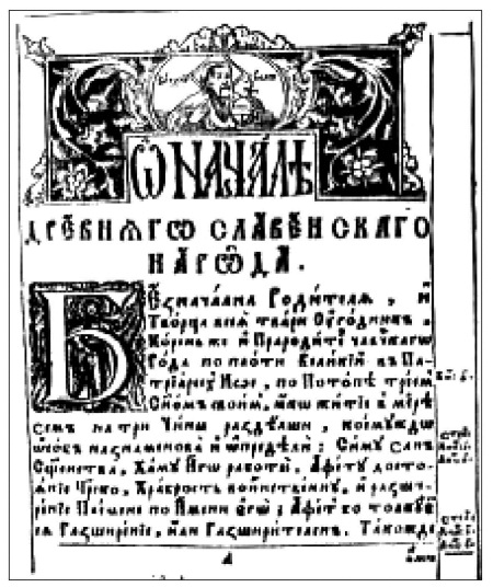 Проблема происхождения Руси и ее изначальной истории привлекала к себе внимание на протяжении многих веков. Русские летописцы вслед за автором «Повести временных лет» начало русского народа связывают с потомством библейского Иафета, одного из сыновей Ноя – родоначальников послепотопного человечества. Связь русской истории с библейской отмечалась и «Синопсисом», который долгое время был учебной книгой по истории России и на протяжении XVII (с 1674 г.), XVIII и XIX вв. много раз издавался, а также распространялся в рукописных копиях. Таким образом, в отечественной исторической науке уже в период ее зарождения русский народ рассматривался как один из самых древнейших и имеющих изначально свое собственное имя.