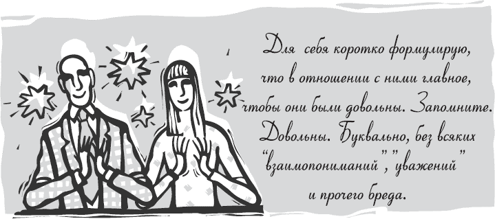 Итак, начну с тех, для кого. Здесь все настолько сложно, что по этой теме написаны тысячи книг. Для себя коротко формулирую, что в отношениях с ними главное, чтобы они были довольны. Запомните, ДОВОЛЬНЫ. Буквально, без всяких «взаимопониманий», «уважений» и прочего бреда. ОНИ должны быть ДОВОЛЬНЫ. Тогда Вы или Ваше предприятие выполните свою главную задачу, т. е. получите прибыль.
