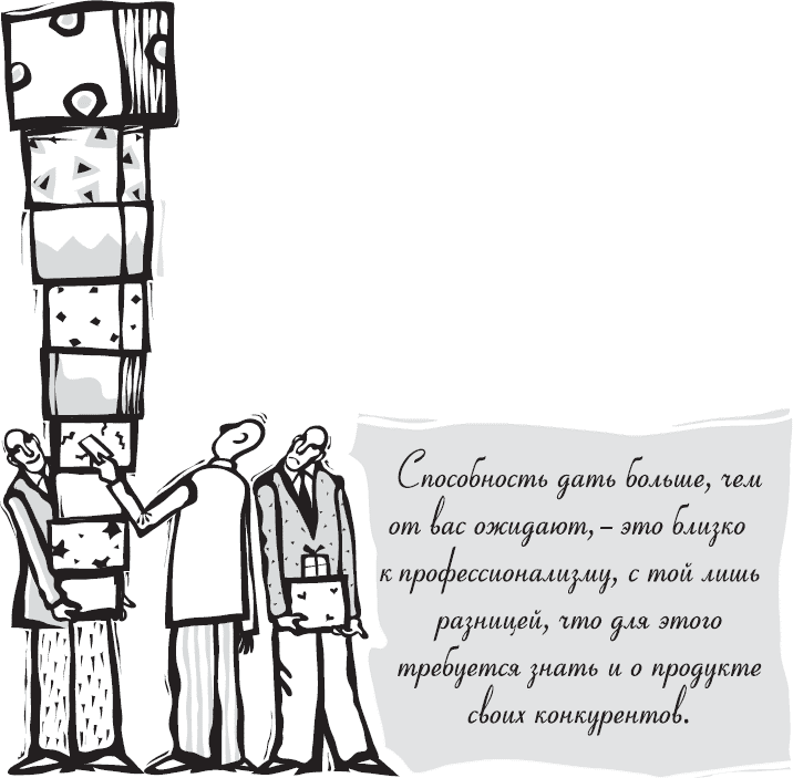 Способность дать больше, чем от Вас ожидают, – это рядом с профессионализмом, с той лишь разницей, что для этого требуется знать и о продукции своих конкурентов.