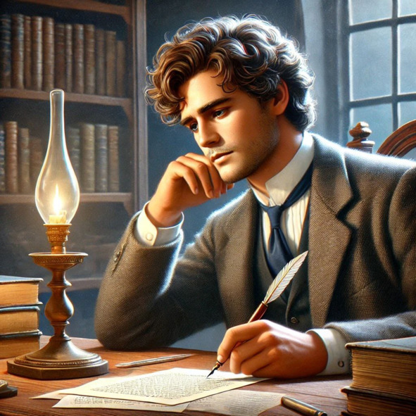 В пивных, что в парке, он трудился,Посуду и полы там мыл.Да ещё в школе он учился.Про отдых Джек совсем забыл.Но книги он не забывает,Хоть время очень бережет.Как время есть, всегда читаетИ выходного очень ждёт.Библиотеку посещает,Запоем Киплинга* читает.И Стивенсона* почитает,Лучшим писателем считает.Школу начальную проходит,Ведь детство кончилось давно.Учиться дальше он не ходит,Работать надо всё равно.